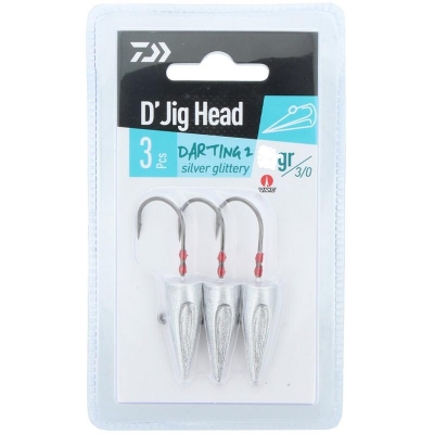 Cabeza Daiwa Jig Head Darting 2 - Num 3/0 - 14 Grs - 3 Unid La cabeza Daiwa Jig Head Darting 2 presenta un diseño fusiforme inspirado en una punta de flecha. Es perfecto para la pesca a la caída y para hacer que el cebo se hunda rápidamente en el fondo. Equipado con un anzuelo VMC 3/0 que garantiza clavado y robustez, está adaptado para la pesca en agua dulce y mar. Dos apéndices barnziados garantizan una mejor sujección del señuelo.