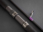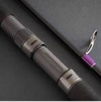 Equipado con un juego moderno de guías anti enredos tipo “k” con anillos SIC y marco de humo de pistola. El porta carretes es el nuevo Fuji DPS en acabado Frosted Dark-Gray.