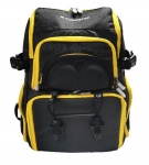Mochila ideal para la pesca itinerante, equipado con dos compartimentos principales, uno de los cuales contiene 4 cajas de plástico para minutería y artificiales.