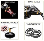 Con cuerpo totalmente metálico y potente freno de hasta 12 kg que garantiza la pesca de buenas piezas, monta manivela Power con conexión roscada CNC y pomo tipo Power Egg.