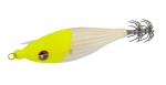 Este señuelo está diseñado para atraer calamares incluso en las condiciones más exigentes. Su acabado en tela texturizada imita fielmente las escamas de un pez, mientras que su cuerpo luminoso lo hace visible en aguas oscuras o durante la pesca nocturna.