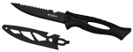El cuchillo de pesca Ron Thompson Ontario está fabricado con resistente acero inoxidable japonés 440 con revestimiento negro y tratamiento criogénico. Cuenta con una hoja principal afilada, filo dentado y agujero para cordón.