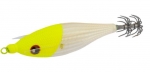 Este señuelo está diseñado para atraer calamares incluso en las condiciones más exigentes. Su acabado en tela texturizada imita fielmente las escamas de un pez, mientras que su cuerpo luminoso lo hace visible en aguas oscuras o durante la pesca nocturna.