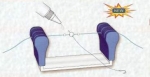 Soporte para sujetar el hilo durante la operación de montaje de terminales. Compuesto de una base de aluminio que lo hace estable y una goma para insertar y bloquear el hilo.